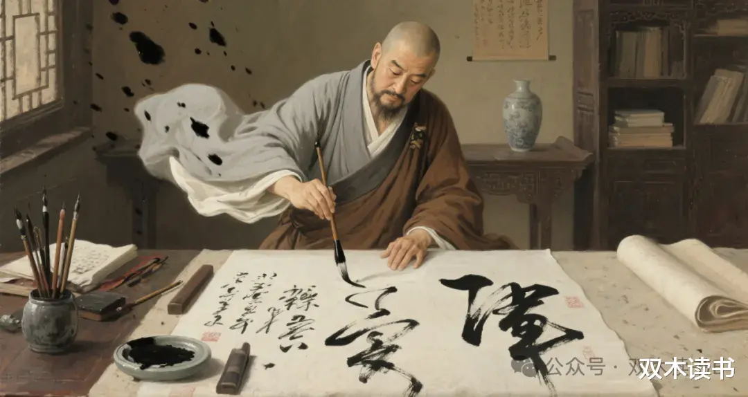 临终前他将毕生所书托付给弟子,留下 "笔墨即心相,狂草亦禅定" 的遗言。