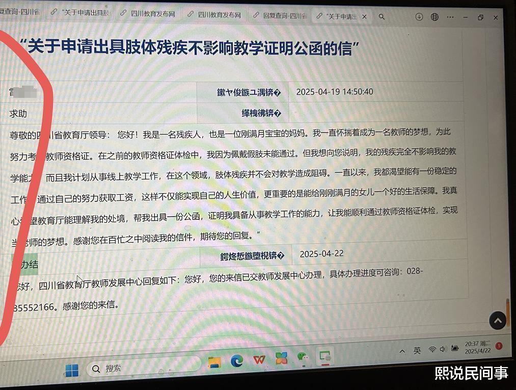 她踩着假肢走过校园的每一步都稳稳当当,却走不过一张印着 “肢体残疾” 的体检表 —— 这到底是在考 “教师资格”,还是在考 “肢体完形填空”?