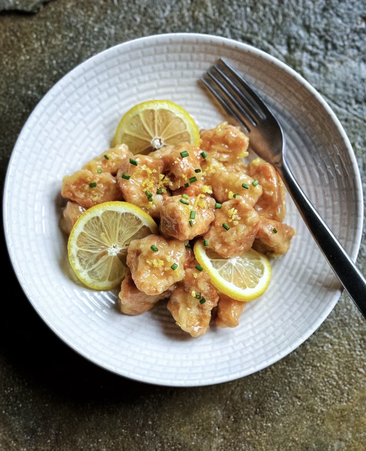 这道炸豆腐的独特之处在于它的酸甜柠檬酱汁。在传统锅包肉料汁的基础上,我大胆地加入了柠檬汁,使其焕发出清新怡人的香气。尽管我未曾品尝过正宗的陈皮鸡,但我相信这道炸豆腐与之或许有着异曲同工之妙。那一抹柠檬的清香,仿佛是春天的使者,为这道菜注入了灵魂,使其成为这个季节的绝佳美味。