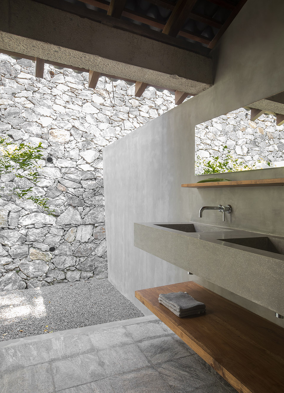 房间的装修十分简约,为客人提供了私密而惬意的居住环境。简约而充满现代感的家具搭配着当地购得的古董家具和装饰品,营造出一种熟悉而又充满本地特色的氛围。其中两间客房的浴室朝向私人庭院,客人可以在淋浴时充分感受大自然的迷人气息。