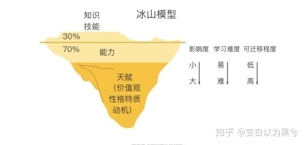 是底层能力。它包括:天赋、价值观、性格特质、动机、等等。这种能力是最核心的部分,它能够完全不被复制、替代、模仿。