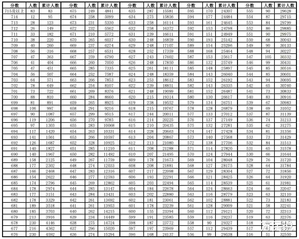 以2025年中考为例,合肥一中长江路校区统招分数线为700分,全市有88名考生达到了这个分数。该校统招计划为55人,如果701分以上的考生已有51人,那么700分段就只剩下4个名额。