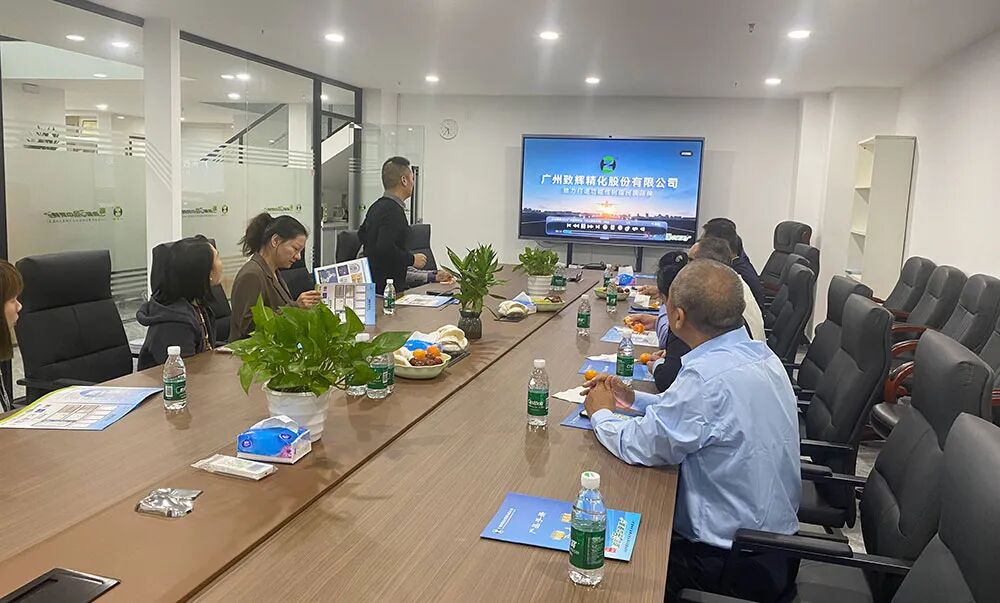 交流伊始,协会代表团一同观看了致辉精化最新宣传片。跃动的影像不仅回顾了公司的创业历程,更重点展现了其在绿色工艺、智能化生产等方面的战略布局,瞬间将现场氛围引向对行业未来的思考。