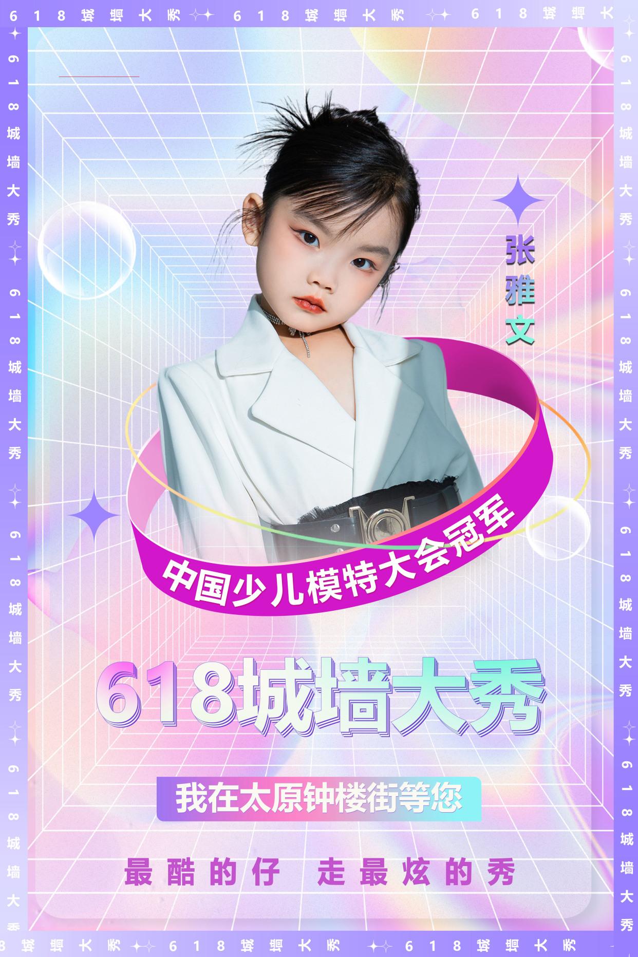 张雅文,英文kitty,兴趣爱好,模特表演,美术,舞蹈,唱歌,可以有自己的创造和想象,喜欢不停问为什么。年仅只有6岁的她在2023中国少儿模特大会全国总决赛中荣获冠军;一路走来,她刻苦训练、勤恳勉励,朝着自己设定的目标不断前进冲刺。