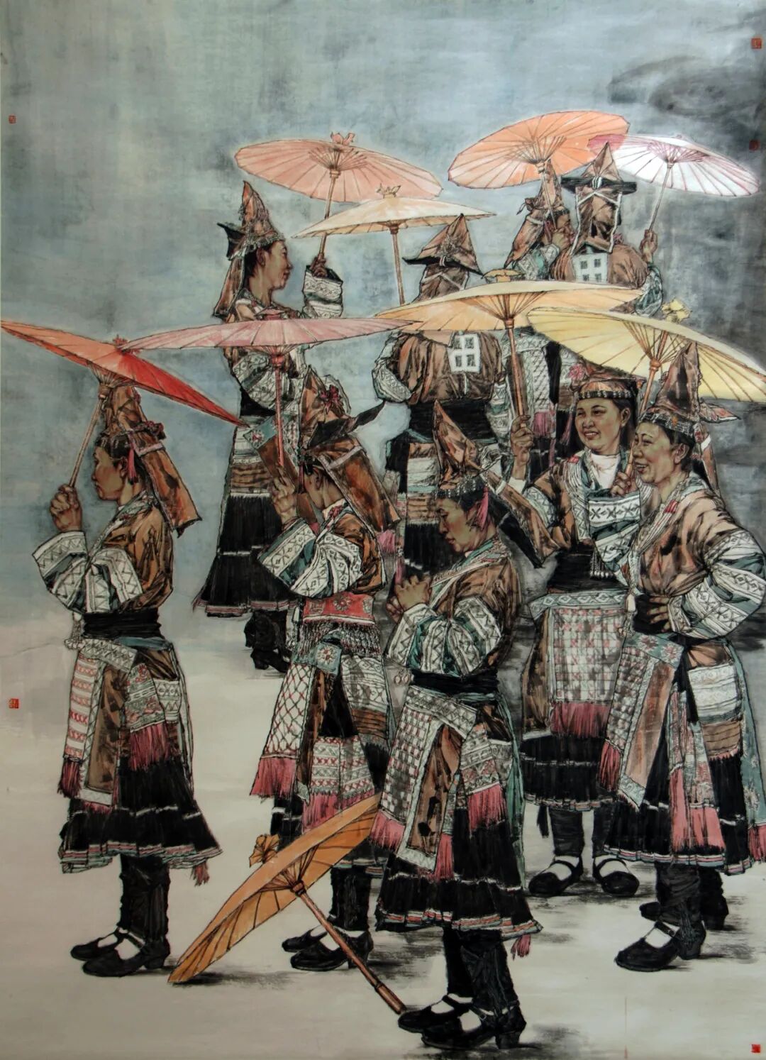 《腰鼓队员》2017年入选香港回归二十周年全国中国画作品展被组委会收藏