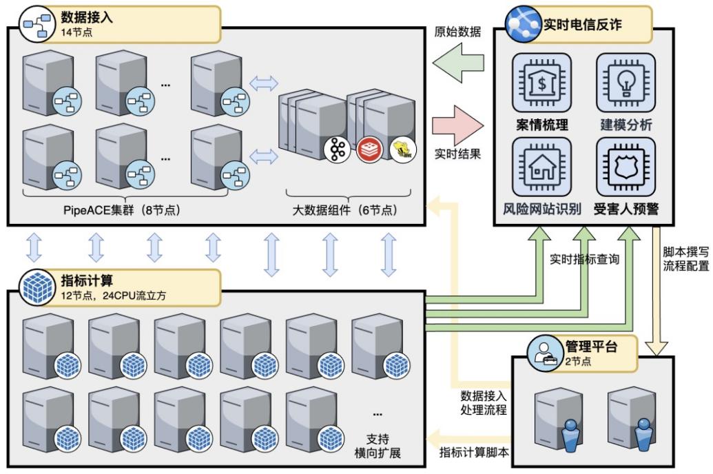 在协作机制上,多方共治的闭环生态是项目落地的核心保障。通过建立横向贯通运营商数据至终端用户,实现毫秒级预警触达;纵向连接公安案情库与基层综治单元,形成“发现-处置-反馈”闭环,将反诈模型从单一风险预警升级为全链条防控体系,借助运营商语音及短信管道实现风险用户的初期干预,实现了对公安预警线索之外的补充防治,在风险发生的第一时间实现初期预警。