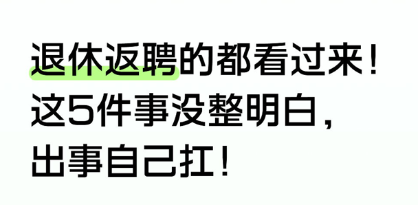 【记牢了】 退休返聘不怕关系变,就怕公司不买保险、合同耍赖。签字前看保单,出事前攒证据,才能让咱的晚年劳动有尊严有保障!