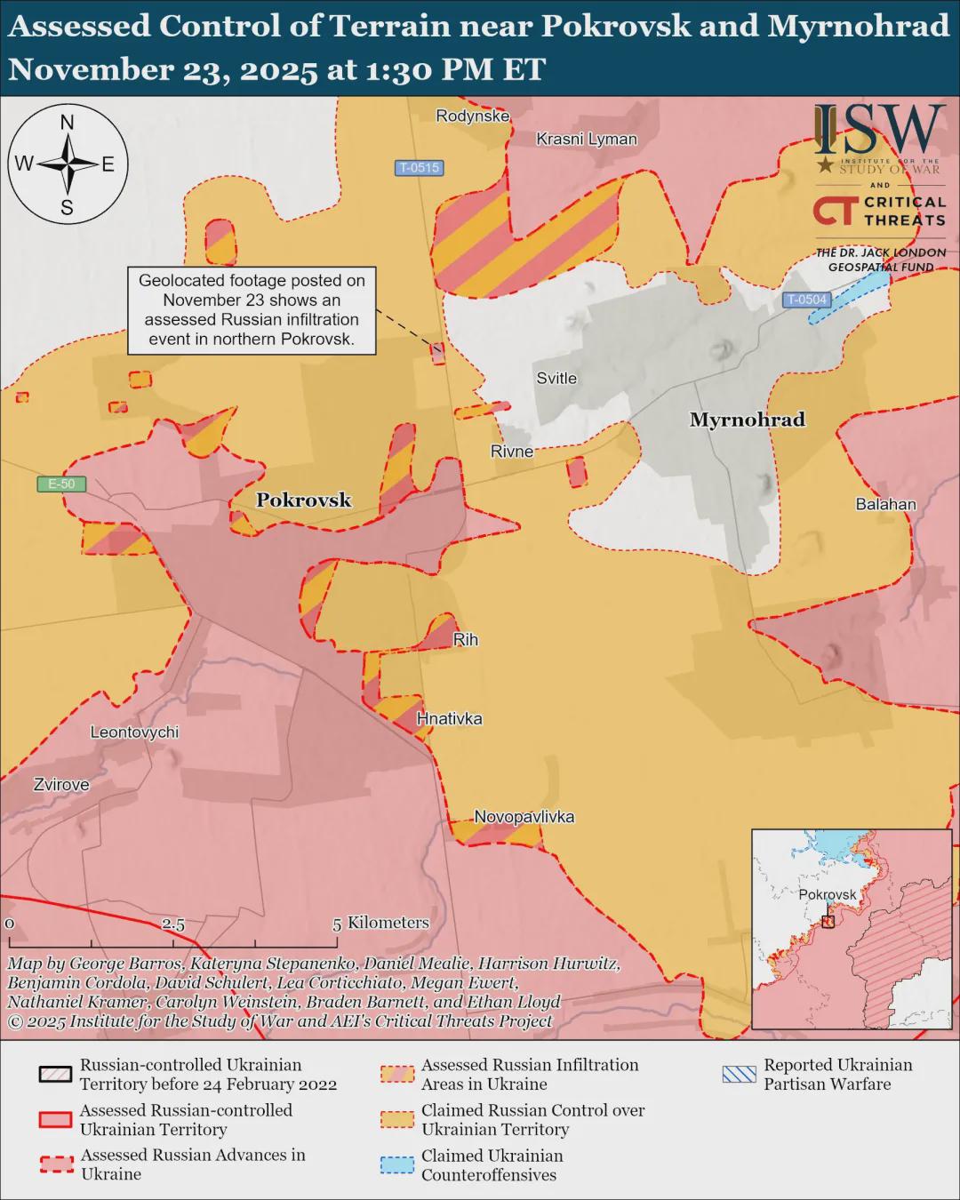 根据美国战争研究所11月23日发布的最新情报,主要有以下关键信息: