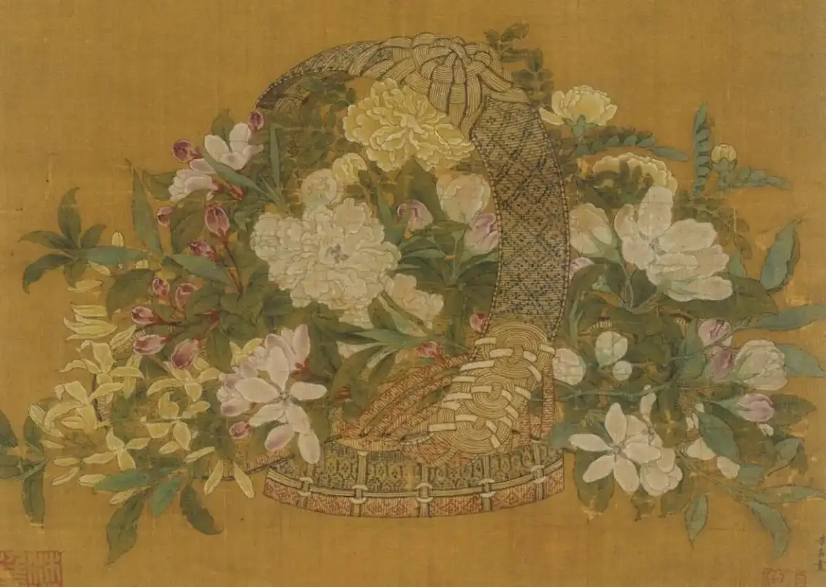 早期雏形:宋代画家李嵩的《花篮图》系列,可以看作是清供图的早期形态。它精细地描绘了盛满四季鲜花的精美花篮,充满了对自然之美的欣赏与礼赞。