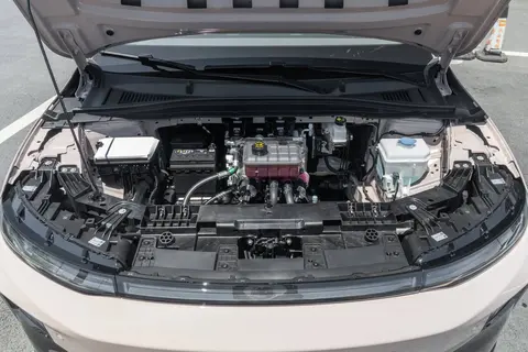 它的空间利用率高得有点出乎意料。后备箱基础容积是 460L,我试着塞了一个 28 寸行李箱、一个婴儿车,还有几个购物袋,居然都装下了。销售说底下还有个可调隔板,拉开能再拓展 70L,放露营装备应该没问题。车内的小储物空间更让人惊喜:前排扶手箱能放下 6 瓶矿泉水,手套箱深到能塞进 14 寸笔记本,连后排中央扶手都带了个专用纸巾盒 —— 这种细节,家里有娃的人应该懂有多实用。
