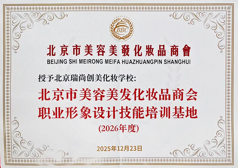 瑞尚创美迎来行业重要认可——正式被授予《北京市美容美发化妆品商会职业形象设计技能考评基地》。