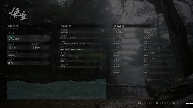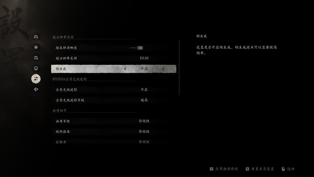 接下来也是测试了时下热门的黑神话悟空,开启帧生成,4K影视级画质。