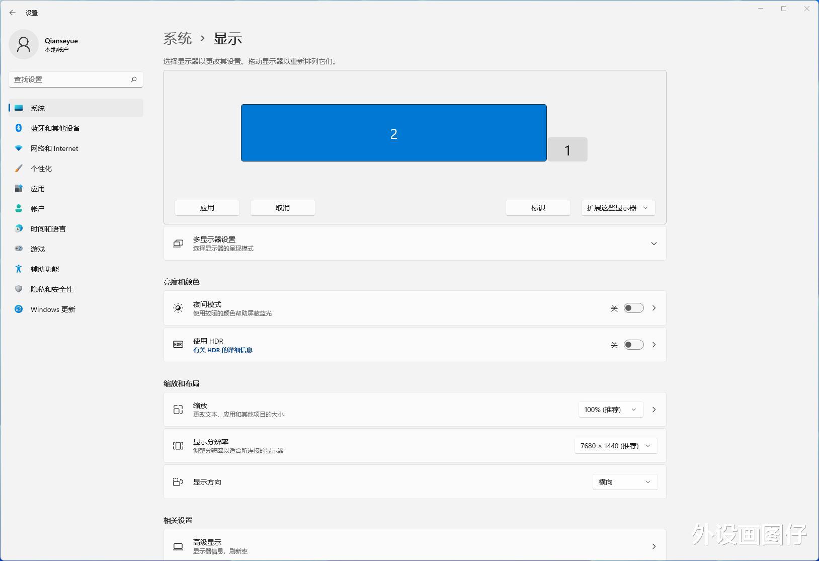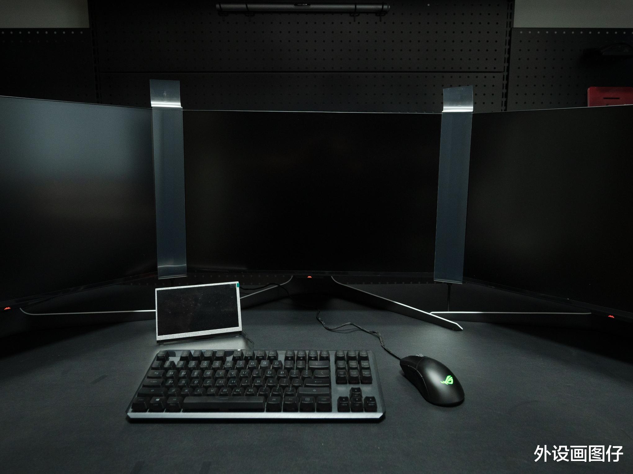 组屏完成后,系统显示中就会得到一块7680*1440的虚拟显示器。左侧还有一块标识1的小屏幕,这个不是开启了PIP或PBP技术,而是我自己利用废弃平板DIY的一块小屏,用了作为仪表板的。