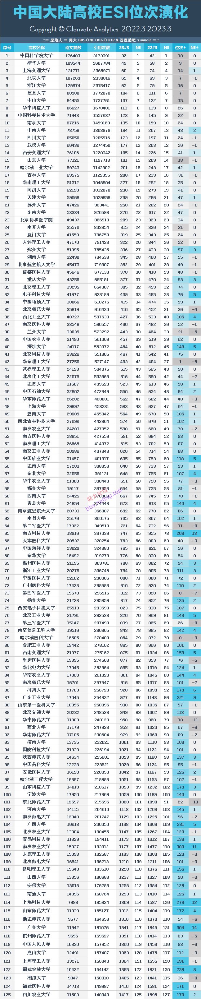 3月9日,科睿唯安(Clarivate Analytics)公布了2023年3月的ESI最新数据。ESI(基本科学指标数据库)是目前世界范围内普遍用以评价高校、学术机构、国家或地区国际学术水平及影响力的重要评价指标工具之一。本次数据覆盖时间范围为2012年1月1日至2022年12月31日。
