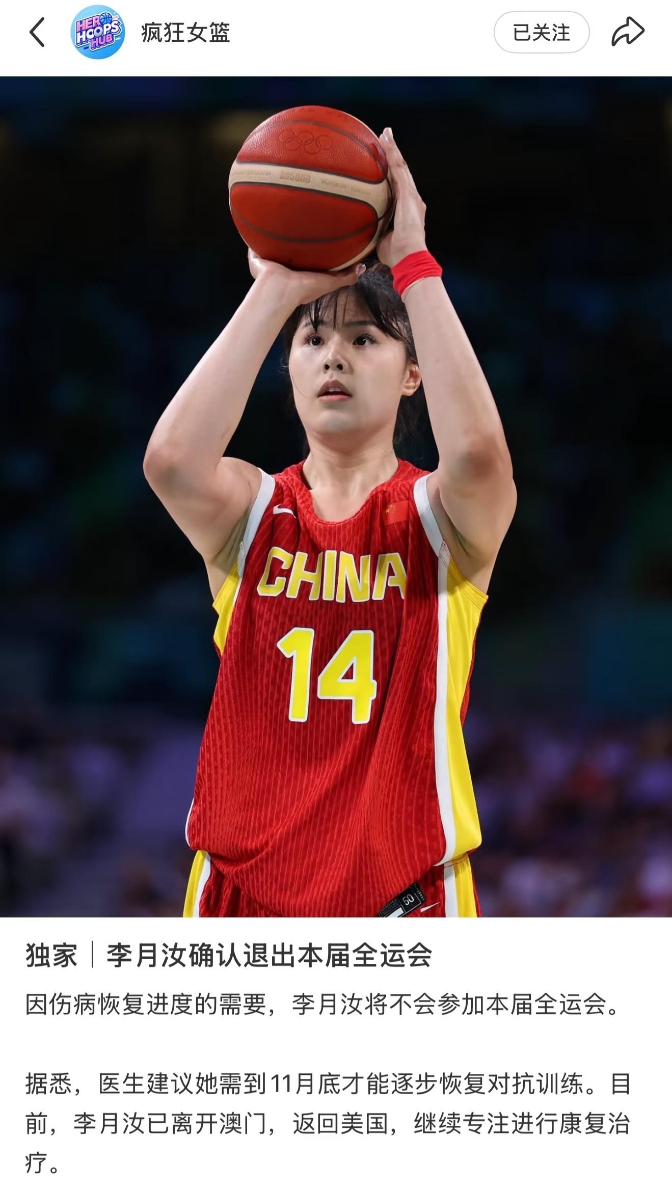 实话实说,李月汝回到美国养伤对中国女篮长远有利,不论是明年的德国柏林女篮世界杯和日本名古屋亚运会,还是2027年的女篮亚洲杯以及2028年的美国洛杉矶奥运会,李月汝都是中国女篮队伍中不可或缺的关键球员,中国女篮要想走得更远,健康的李月汝将发挥至关重要的作用。