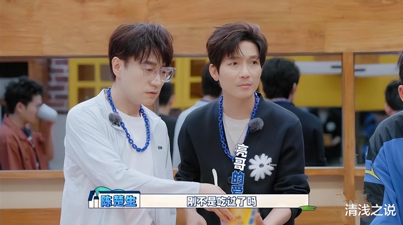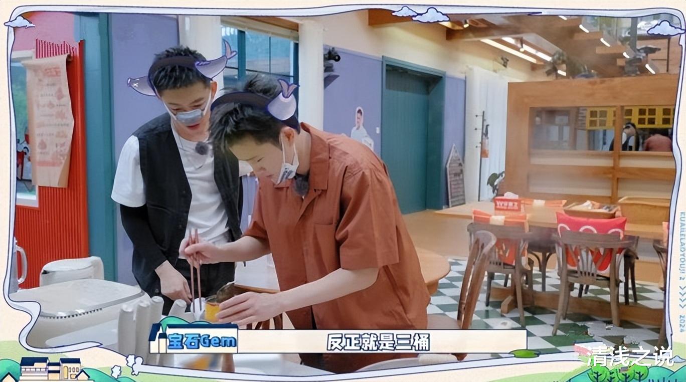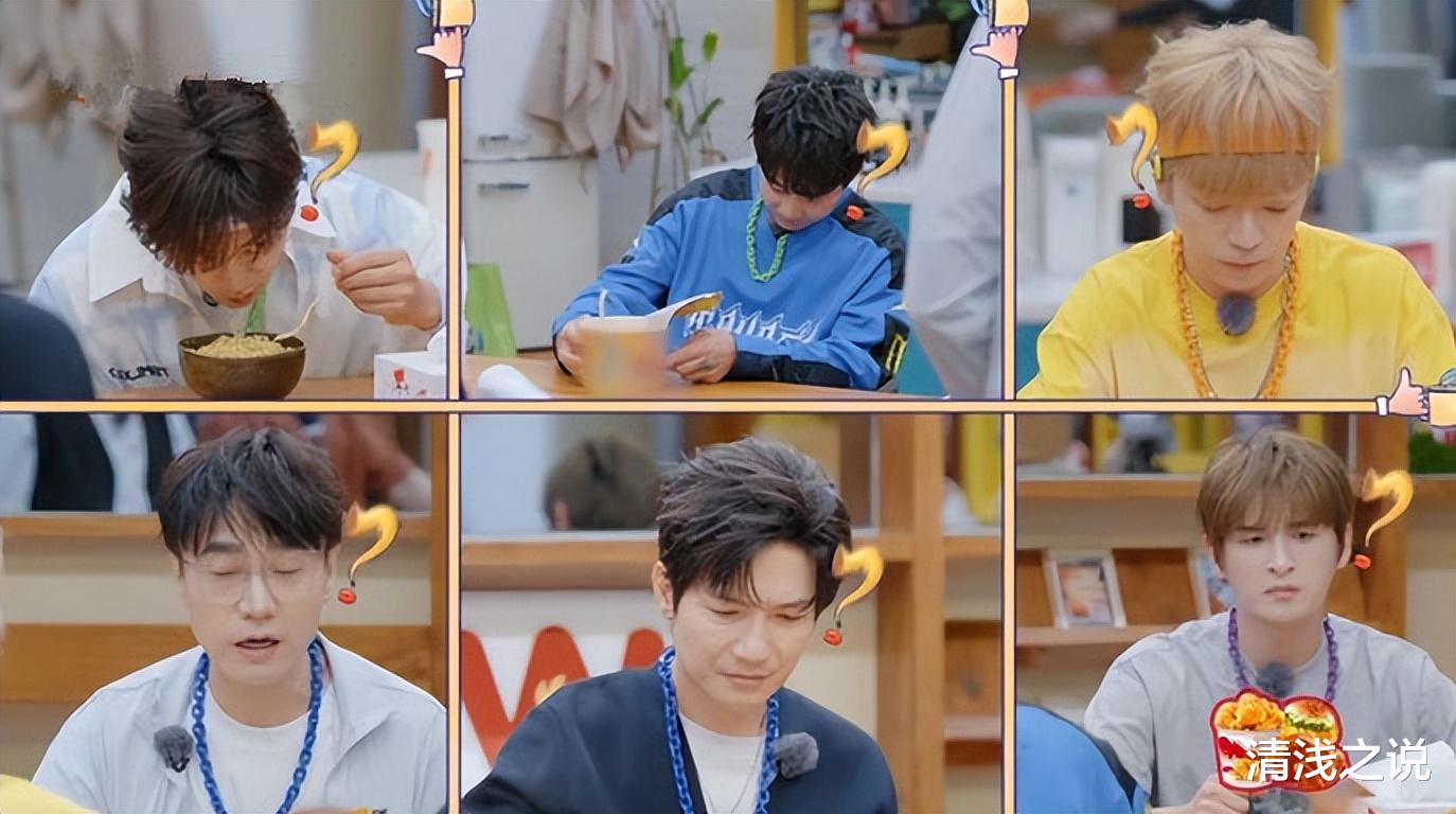 毫不知情的厚米团还真以为新来的两位客人只是给他们准备了泡面,都很自然地坐到桌前吃面。其中王铮亮只能说都是命啊,天选鲱鱼泡面品尝人,他拿的第一桶泡面是加料的,给了陈楚生,再拿第二桶泡面自己吃的还是加料的,而陈楚生则在王铮亮的热情下被动地成为“受害者”,张远是运气不加,自己选了加料版泡面。