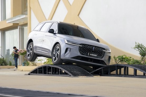 交叉轴测试里,航海家顺顺利利就通过了,做对比的凯迪拉克XT5卡在那,单侧车轮一个劲转就是往前挪不动;驼峰测试更明显,航海家上下坡都稳当当的,凯迪拉克XT5下坡时前保险杠差点蹭到地面;斜坡起步的时候,航海家给油就走,凯迪拉克XT5不光顿了一下,还稍微溜了点车。