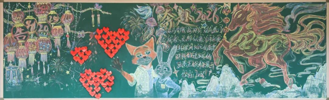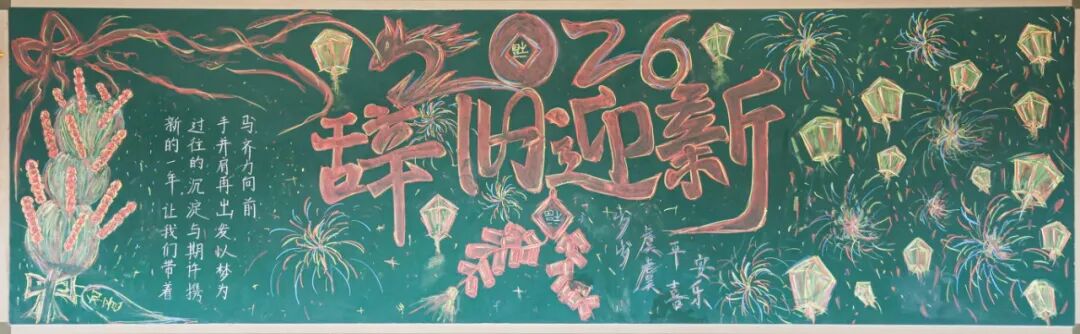 其实不必如此。后黑板上的新年板报就是提醒自己,要学会在新的一年里拥抱——那个在课堂上勇敢举手回答问题的你,那个为了板报排版反复修改却仍不气馁的你,那个最后一个离开教室却依然坚持第一个到达的你。