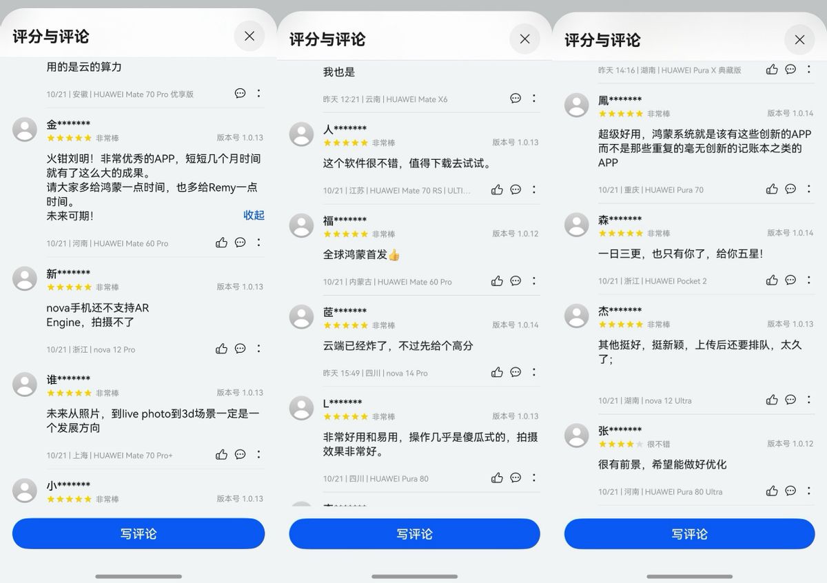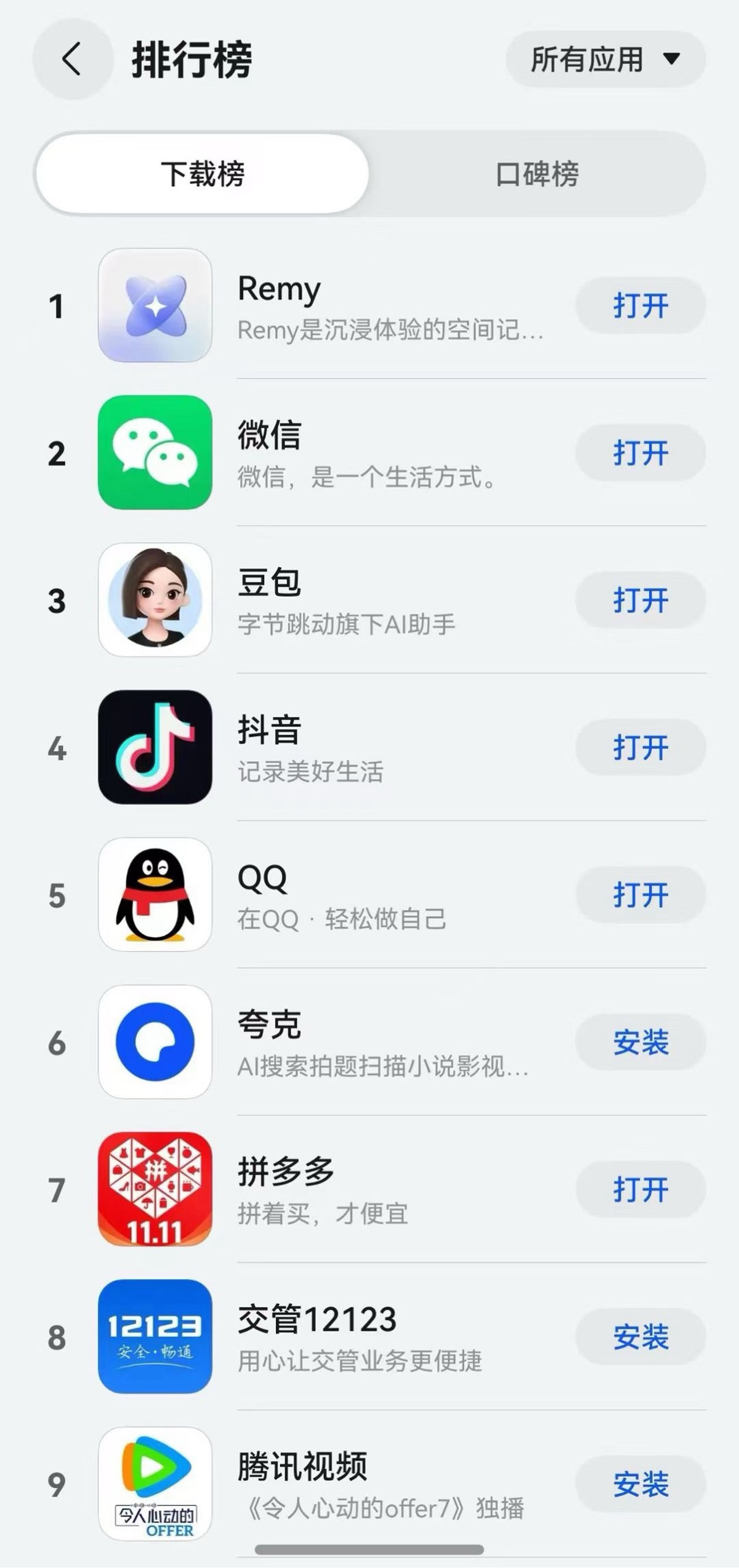 大家都看了昨天下午的鸿蒙6发布吗?我看的时候就被一款名叫Remy的3D影像应用吸引到了,升级系统后立马去华为应用市场下载体验了,别说还真挺有趣的。而且短短几小时内,它的下载热度就迅速超越微信,登顶应用排行榜首位。我还看到好多朋友说因为访问量激增,直接把服务器挤爆了,这火爆程度可见一斑了。
