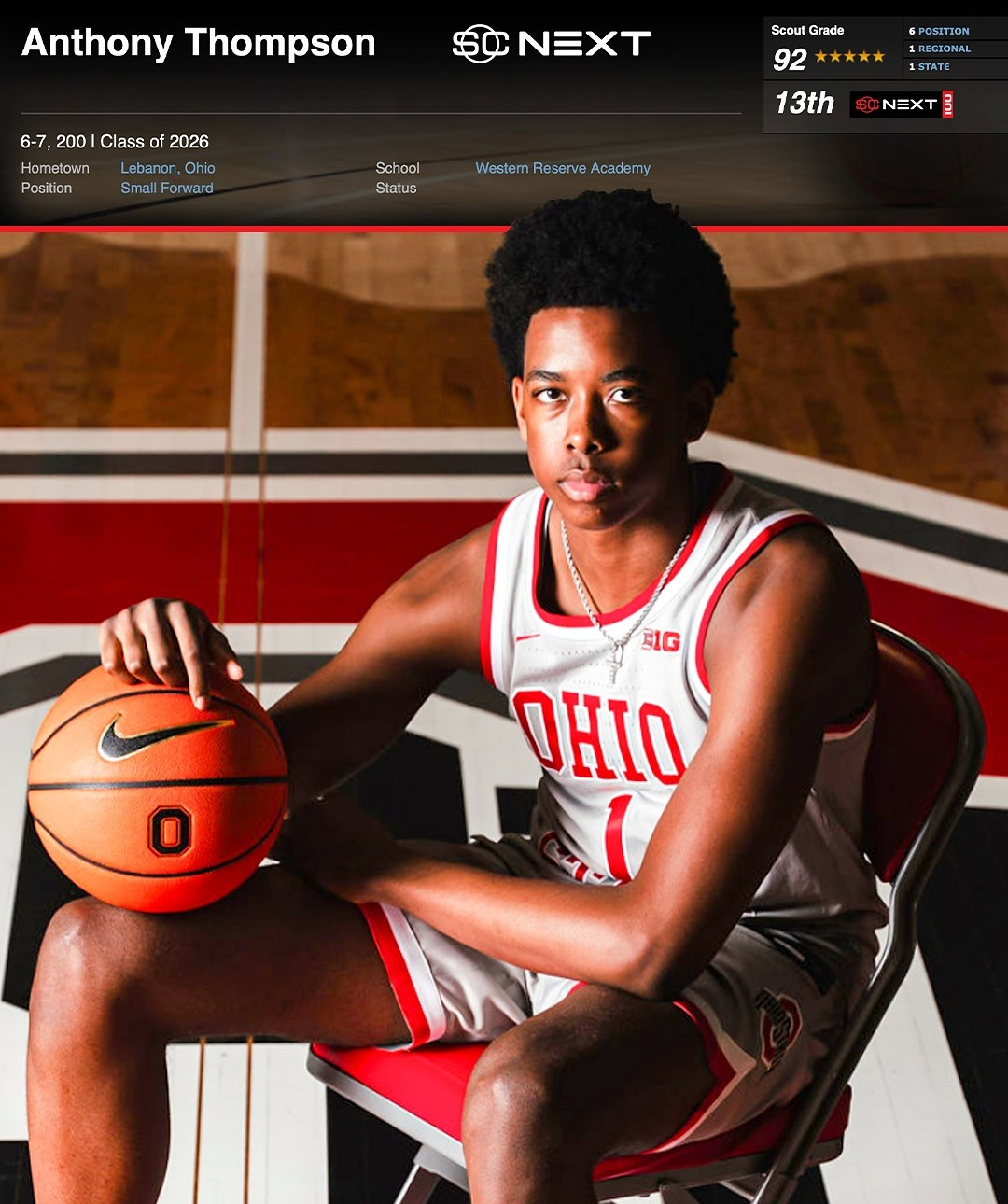 2026届五星小前锋安东尼-汤普森(Anthony Thompson)已经宣布承诺加盟俄亥俄州立,成为七叶树队十多年来收到的排名最高的球员。
