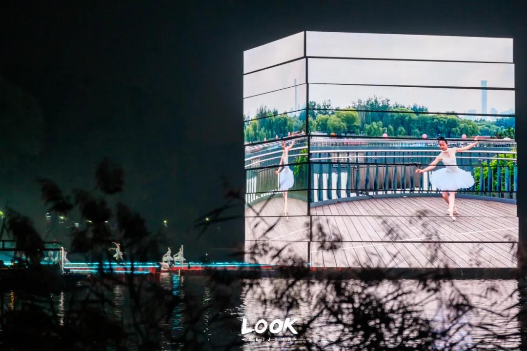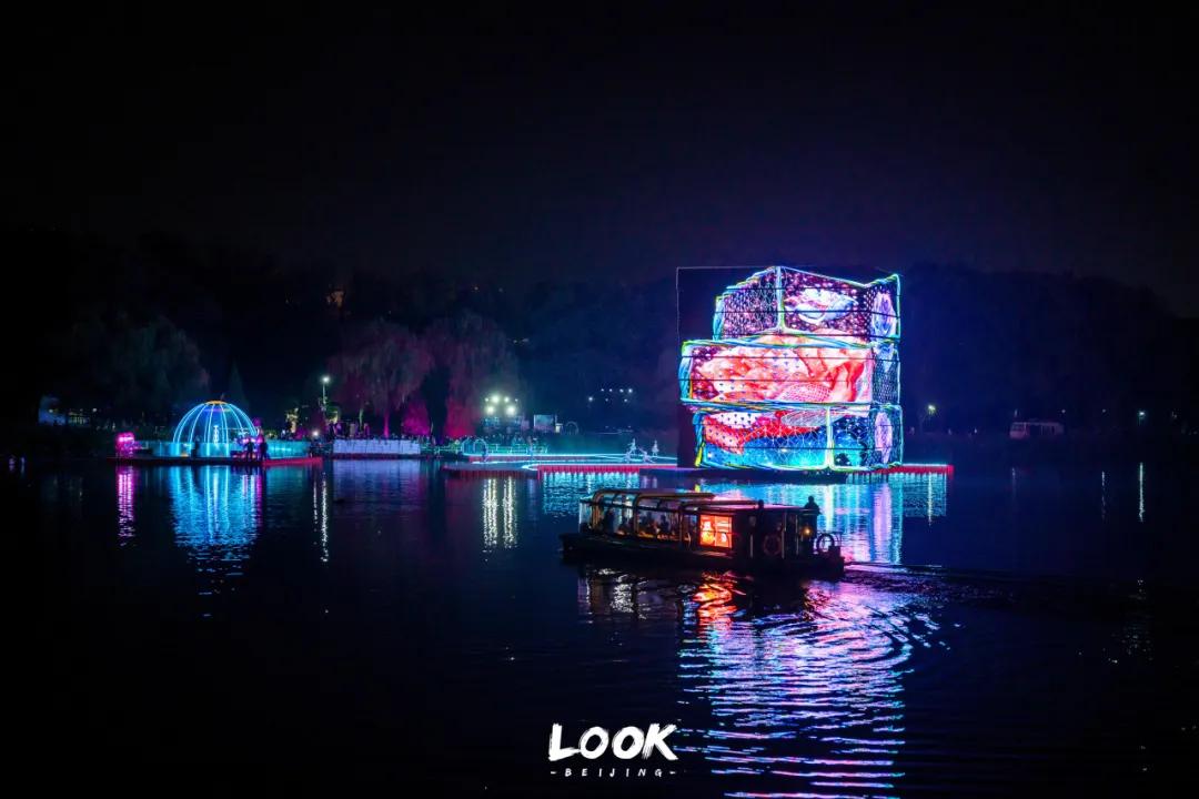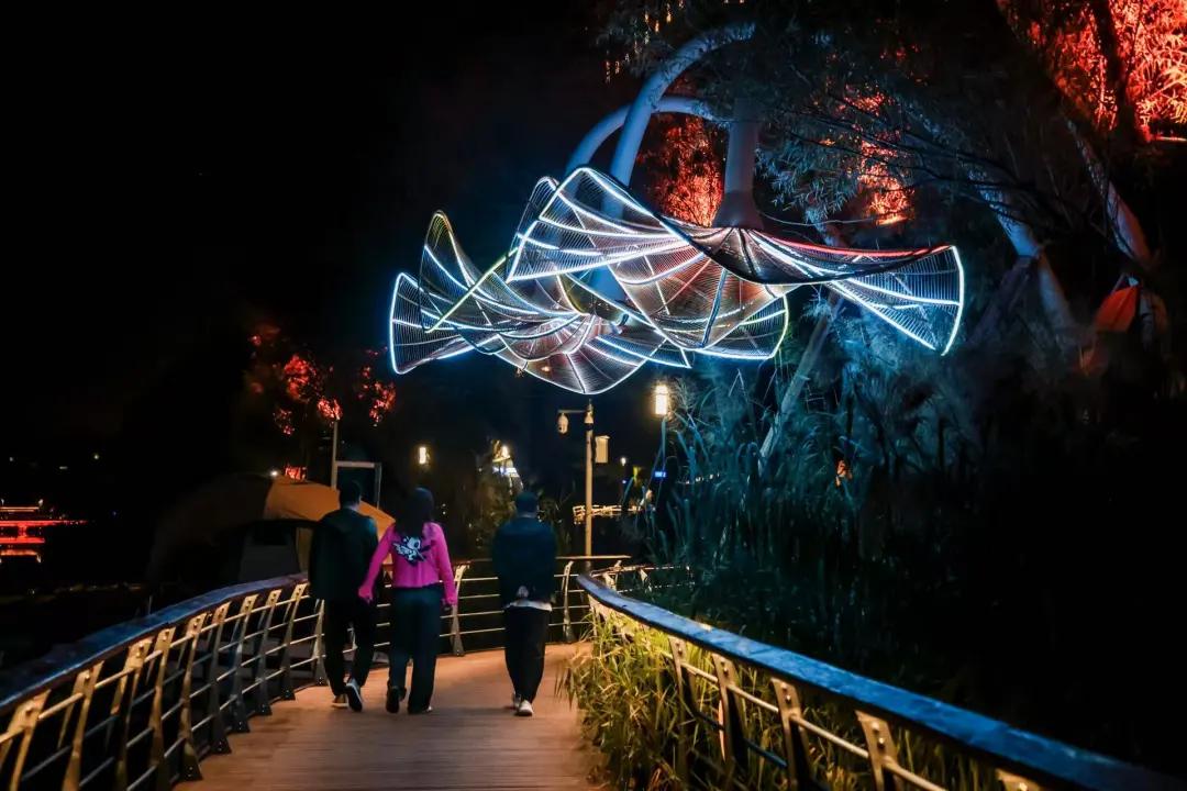 构成一条贯穿水上与岸边的夜间艺术长廊