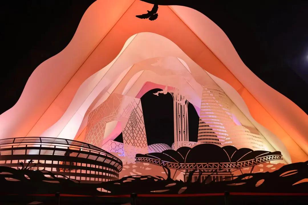 「幻光之山」以六层“仿剪纸”图案叠合构建时空轴线
