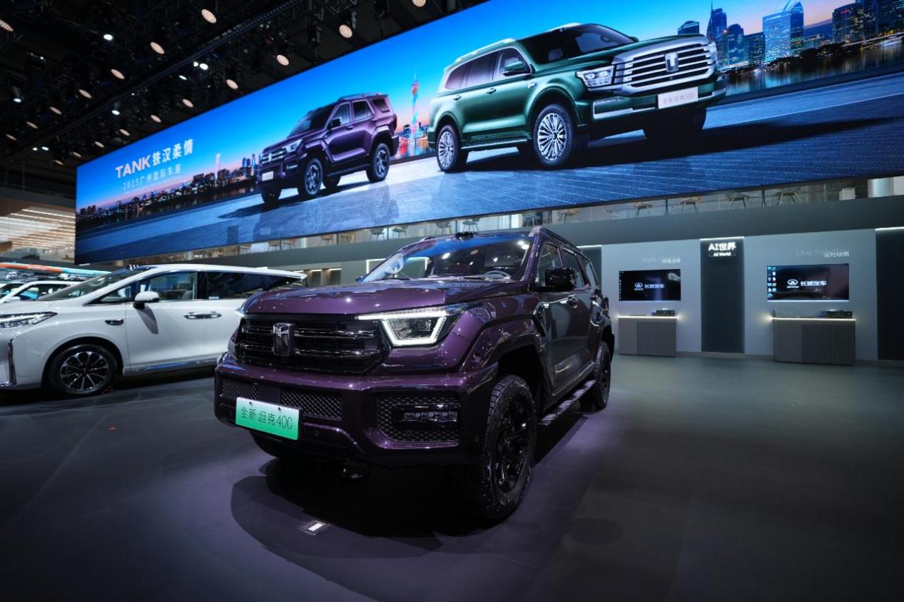坦克展台的另一大亮点是两款全新配色车型的亮相。坦克400的“敦煌紫”配色灵感来源于莫高窟壁画中的经典色彩,既蕴含“紫气东来”的传统吉祥寓意,又与岭南本土文化形成巧妙呼应。其标志性的机甲外观设计,通过凌厉的线条和立体的型面处理,展现出独特的未来感。市场表现也印证了这款车的受欢迎程度,上市两周即获得近5000台的销售成绩。