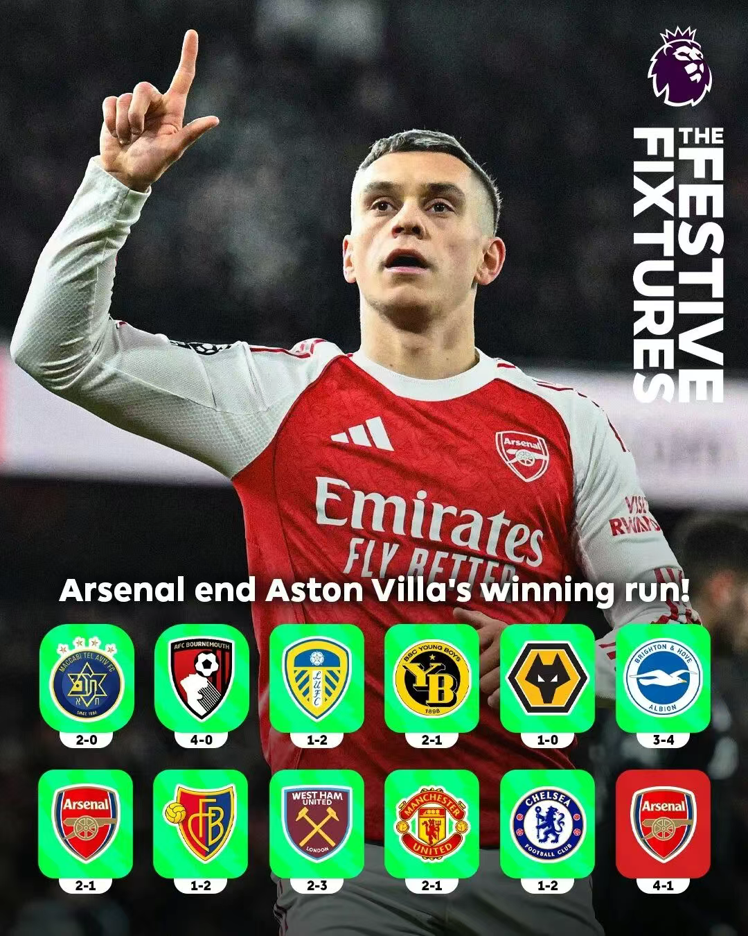 结果一场预期中的巅峰对决,变成了枪手的屠杀秀——阿森纳下半场火力全开,4比1痛击埃梅里的球队,稳稳拿下英超半程冠军。