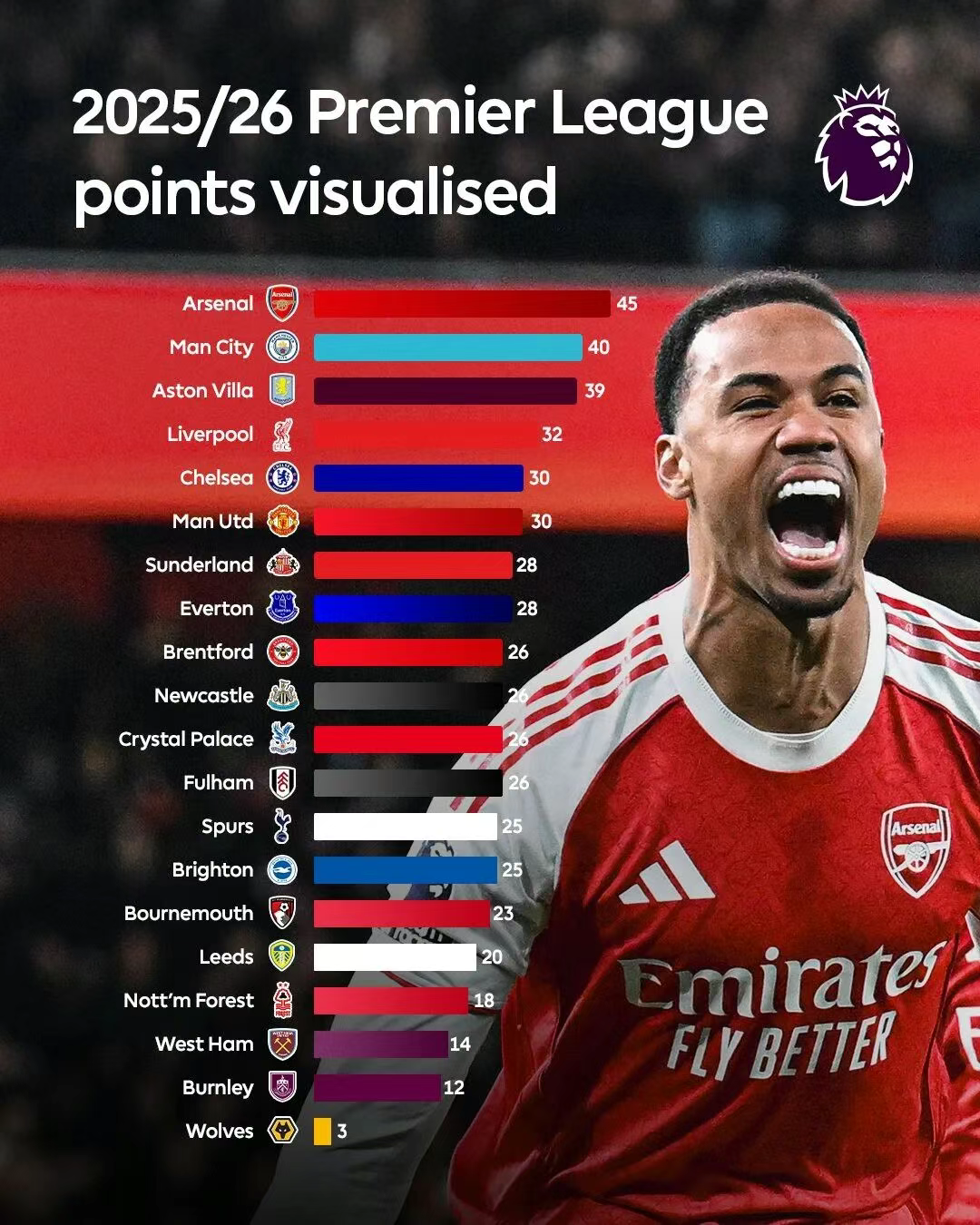 这场胜利让阿森纳成功复仇,并锁定了英超半程冠军。千嗨体育数据显示,在2025年年度积分榜上,阿森纳以83分高居榜首,曼城80分排名第二,维拉位列第三。