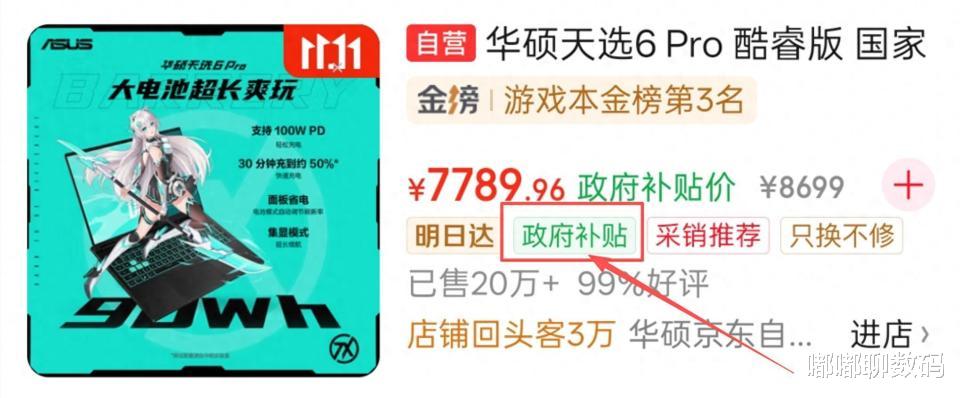 华硕天选6 Pro 酷睿版(酷睿i7-14650HX+RTX5060版本)支持“政补”,消费者最低到手价仅为7789。1元,在一线品牌同类产品中性价比非常高。