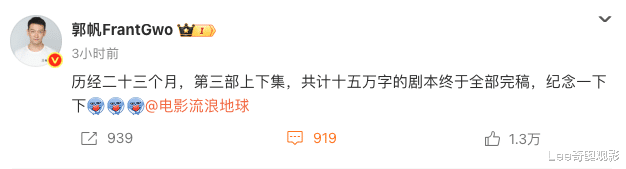 可想而知,郭帆面对的压力是空前的!在纪念《流浪地球3》剧本完稿的博文中再次回复众多网友提问。
