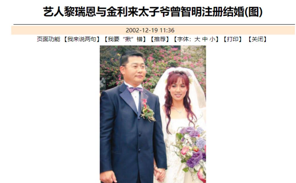 2002年,黎瑞恩做出了一个重大决定,她要嫁给曾智明,进入曾家的大门。