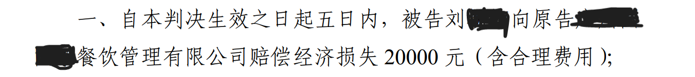 被告刘某向原告某餐饮管理有限公司赔偿2万元。