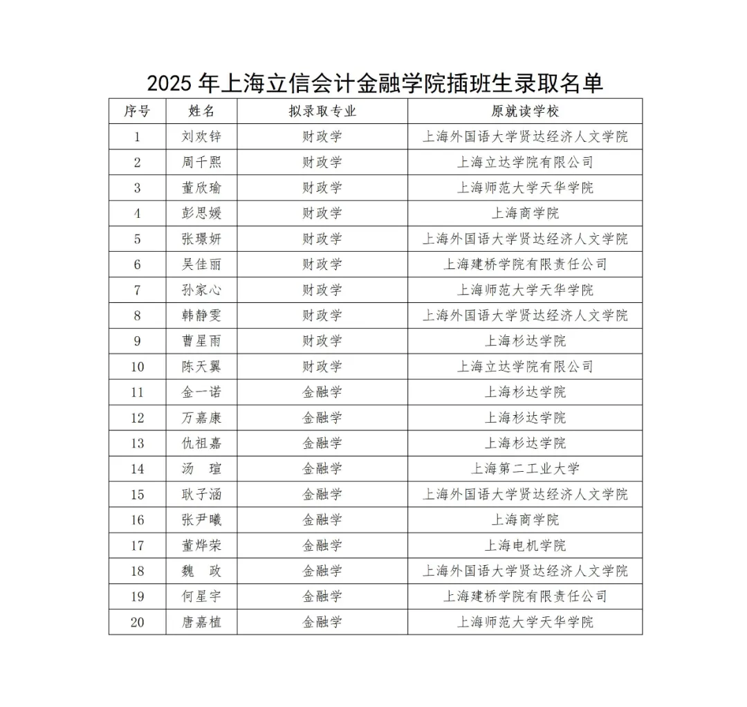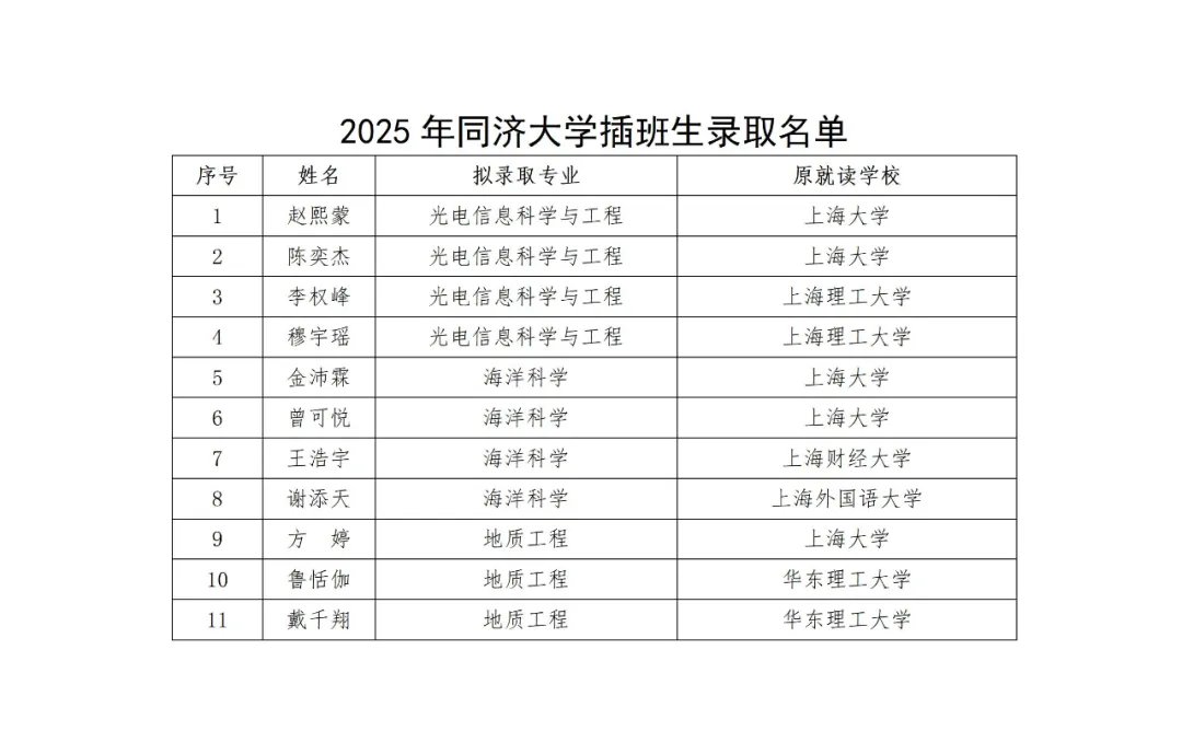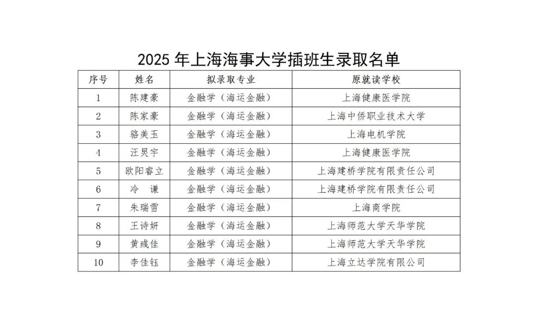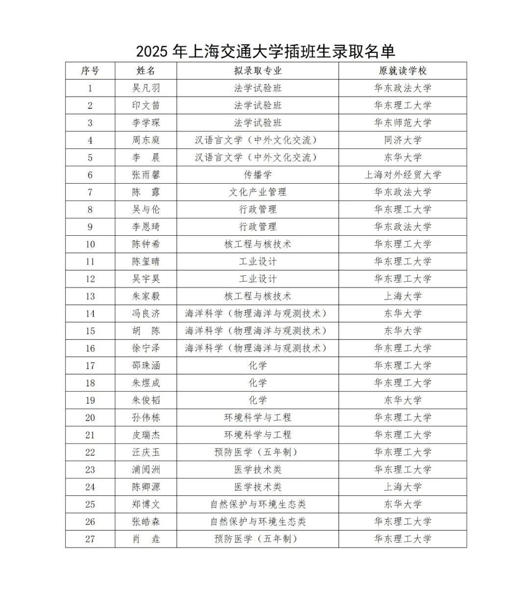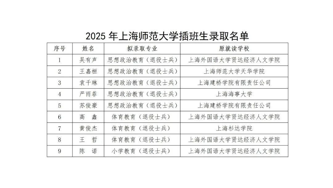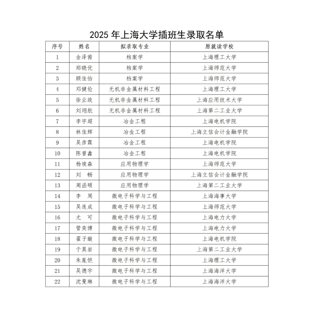 日前,《上海市教育委员会关于做好金钲皓等278名2025年普通高校插班生入学工作的通知》发布,上海市2025插班生共计录取278人。【具体录取情况见下文】