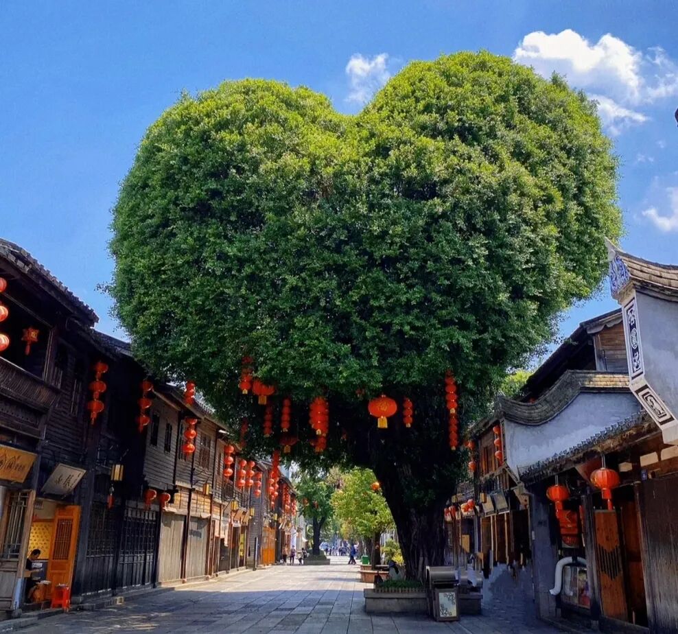 古老的树木,经年累月,生长出奇特而浪漫的形态,仿佛凝固的爱意,向世人无声地倾诉。树下成串悬挂的红灯笼,一抹鲜艳的中国红,在绿意盎然的背景中显得格外喜庆,也总能轻易撩拨起游子心中那根思乡的弦。在此虔诚许下心愿,无论祝福能否传达到远方,心意已至,便已足够。小城的生活气息,随着日头渐高而愈发浓郁,路上停停走走的人也多了起来,但那份宁静与安逸,却始终是这座城市的底色。记忆中熟悉的人和物,仿佛从未走远,一直都在这里,静静地守候。