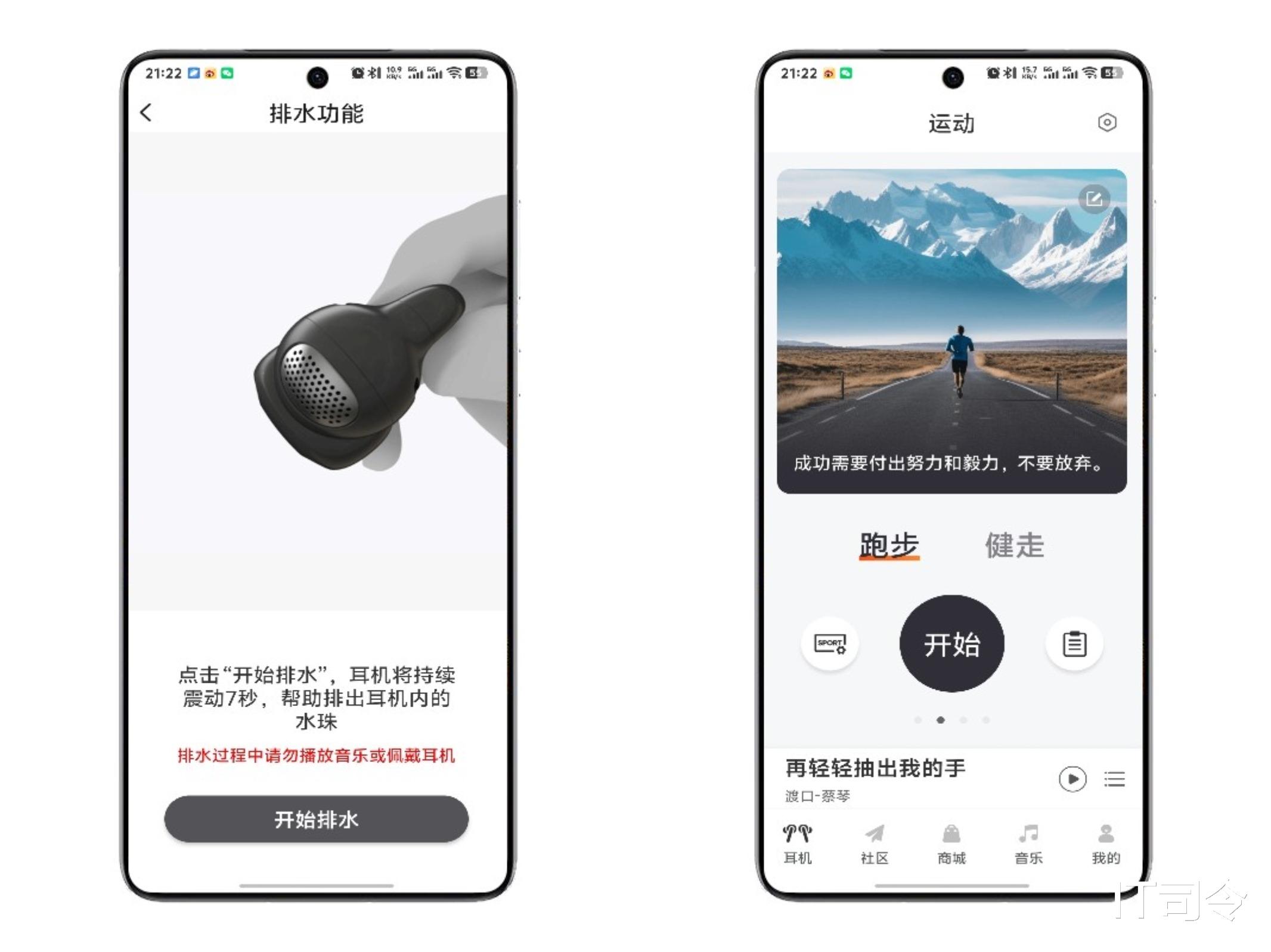 漫步者有一个专门管理耳机的APP,功能非常强大,开启运动模式后,运动时长、里程、配速、卡路里等数据一目了然。随时记录你的游戏数据,而且漫步者FitClip Ultra还支持IPX6级专业防水,针对雨水、暴汗的情况,都无需担心。如果担心水进到耳机内部,可以在APP端开启一键排水功能,耳机会震动7秒来排出内部水分。
