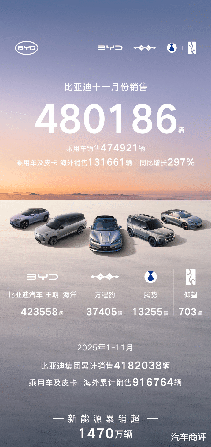 比亚迪11月销量的惊人之处不仅在于数字本身,更在于其背后展现出的均衡性和结构性优势。从品牌矩阵到产品布局,比亚迪已经构建起一个难以撼动的生态系统。这套“生态系统”,可以说是比亚迪持续发展的最好证明。
