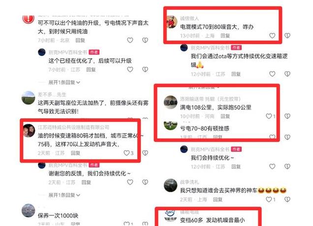 而更加有意思的评论区很多别克GL8的车主说亏电70-80码会有顿挫感,噪音大,电混模式70-80噪音大等等,既然自己卖的车都这么多问题,怎么好意思去抨击别人呢?太可笑了!