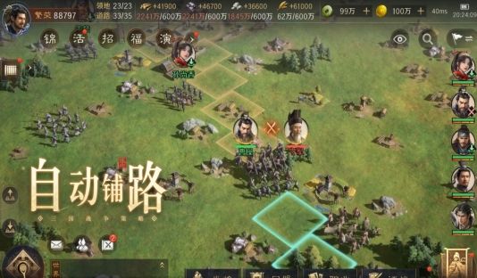 先说说减负方面。游戏里有自动化操作和资源养成优化,大大减少了玩家的操作负担。像自动铺路、打城和政务委任这些自动化操作,让大家不用再把时间浪费在重复性的操作上。而且城内自带资源地和练兵所,武将等级还能无损置换,资源与养成得到了极大的优化。这就好比你有了一个得力的助手,帮你处理那些繁琐的事务,让你能把更多的精力放在策略思考上。很多玩家都说,以前玩别的SLG游戏,每天要花大量时间在资源采集和武将养成上,累得够呛。但在《三国:谋定天下》里,这些问题都迎刃而解了,玩起来轻松多了。