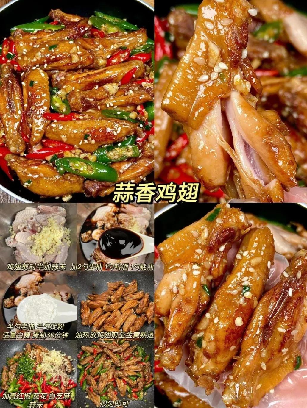 做法:锅中倒油,放入大量蒜末炒至金黄,加入鸡翅翻炒,加生抽、蚝油、少许盐调味,倒入半碗清水,焖煮 10 分钟,大火收汁。鸡翅裹满浓郁的蒜香酱汁,香到让人忍不住多吃几个!
