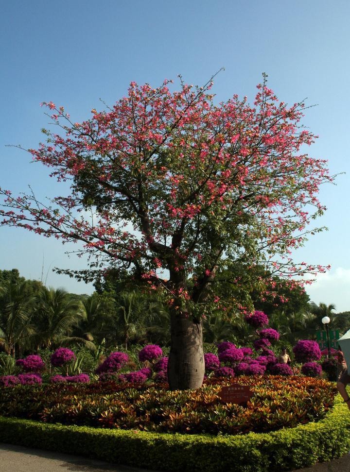 美丽异木棉并非总是簇拥生长。它常常独自屹立,不与其他树木争奇斗艳,仿佛一位遗世独立的隐士,静静地守护着自己的一方天地。这独特的生长习性,也赋予了它“孤傲非凡”的花语。它不依赖于他者的存在,而是凭借自身的独特魅力,吸引着人们的目光,展现出一种与众不同的气质。