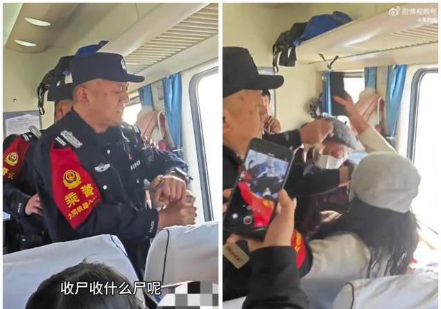 不仅一直拿手机拍摄乘警,想用手机砸乘警,眼见行不通了,还拿剪刀以自杀威胁,称自己死了,你们要给我收尸!