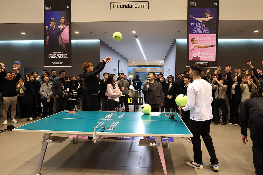 世界第一阿尔卡拉斯和世界第二辛纳都放弃了赛季初的澳网热身赛,但是他们两人也没有闲着,在距离辛纳于都灵举行的ATP年终总决赛决赛中击败阿尔卡拉斯55天后,这对组合在韩国首尔重聚球场,参加第14届现代信用卡超级对决赛。