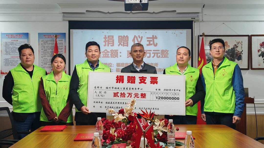在闽江奔腾的浪花里,藏着福州这座城市的温情密码;在鼓山苍翠的年轮中,刻着退役军人的使命担当。当一位安徽籍退役军人的赤诚之心,与一家5A级社会组织的公益之路相遇,便奏响了一曲跨越地域、情暖人间的爱心赞歌。近日,福建鼎芝丰律师事务所主任律师孙良保向福州市福延公益慈善服务中心(以下简称“福延公益”)捐赠人民币贰拾万元,这笔带着温度的善款,将定向用于助学、助困、助老及乡村振兴等公益项目,为需要帮助的群体送去希望与力量。福延公益法人代表张祥成、副理事长兼监事高峰、副理事长林碧海代表机构接受捐赠,这份善意,在榕城大地上传递着正能量,书写着新时代公益与责任的动人篇章。
