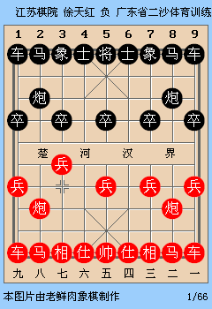 吕钦与徐天红的对冲之战,徐天红执红,两头蛇对左马卒底炮布局。开局一番兑子过后,红棋七路炮深入腹地遭到黑棋的围剿,从此埋下了隐患。尽管徐天红连续陷兵解围,但还是被吕钦强夺一子。行棋至此,从棋理来讲,黑棋属于得子不得势,红棋有足够的补偿与之一战。第二十九回合,徐天红退车卒林成为本局的败招,如能改走车二退一捉炮,牵制对方马炮,随后跃马参战,仍有机会谋得一盘和棋。实战捉卒,黑棋战马毫无顾忌直扑卧槽,徐天红丢车溃败。另一台陶汉明后手击败于幼华。