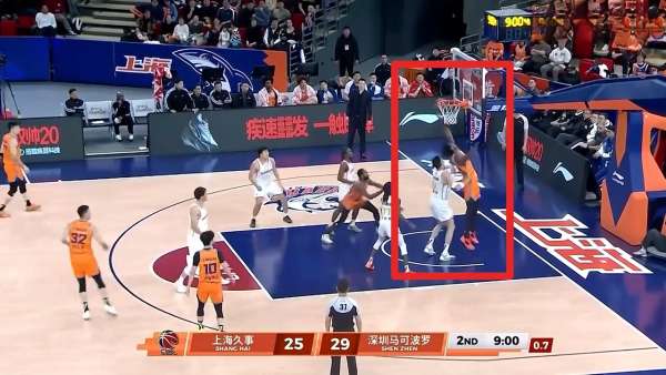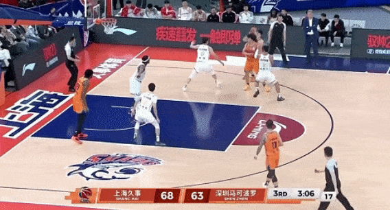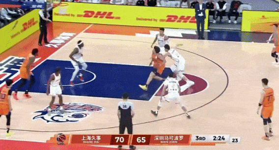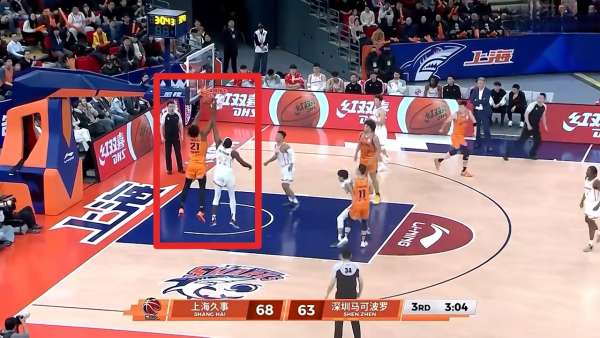 张镇麟侧翼三分出手,怀特塞德立刻在篮下和卡巴争抢位置,如果看初始动作,卡巴似乎更有优势抢下篮板,