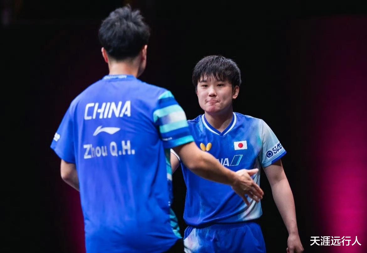 替补桥本帆乃香出战的长崎美柚,以3-2(8-11,11-4,11-4,8-11,11-6),力胜德国老将莎宾·温特,下一轮对阵蒯曼。