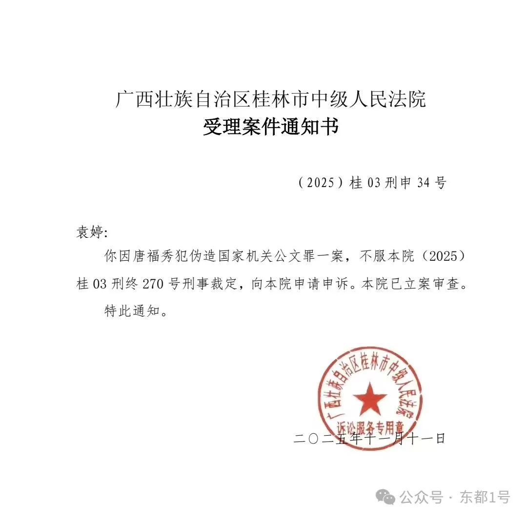9月2日,桂林市中级法院作出终审判决,以伪造国家机关公文罪,判处桂林市71岁老人唐福秀有期徒刑六个月。但唐福秀的女儿袁婷认为纪委不是国家机关,伪造纪委文件不构成伪造国家公文罪,因此向桂林市中院申请申诉。