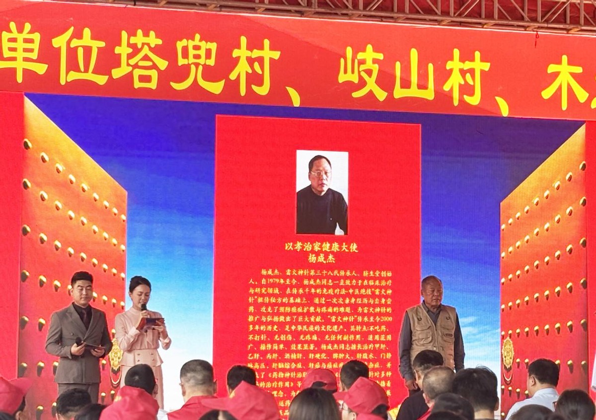 以孝治家健康大使杨成杰教授在致辞中介绍了杨善庙自成立以孝治家示范基地以来,村里发生的变化。他说:自从以孝治家落地到我们杨善庙,我们全村的老年人幸福感、安全感都大大地提高了,村里风气越来越好,越来越多家庭知道要教孩子懂孝顺、守规矩,就连以前不孝顺老人的,也受影响改过来了,对老人好得很。今后,我们杨善庙三支队伍将继续严格执行《以孝治家行动部署》标准不走样,切实解决老百姓“急难愁盼”的实际问题,促进全村再上新台阶。