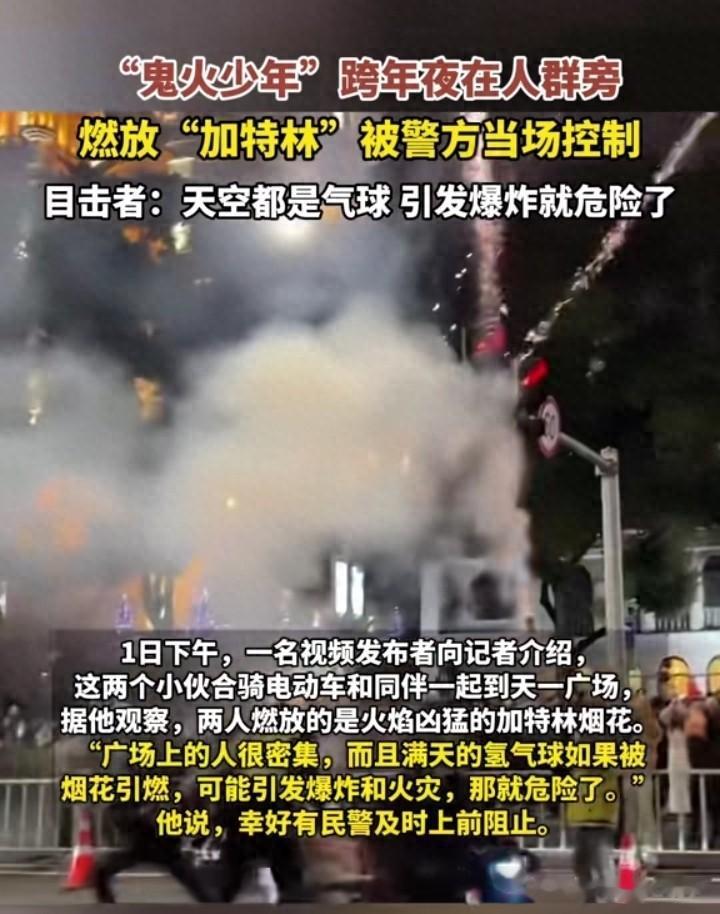 真就是无知者无畏,几个骑电摩的小年轻居然在跨年夜,跑到闹市区放烟花。